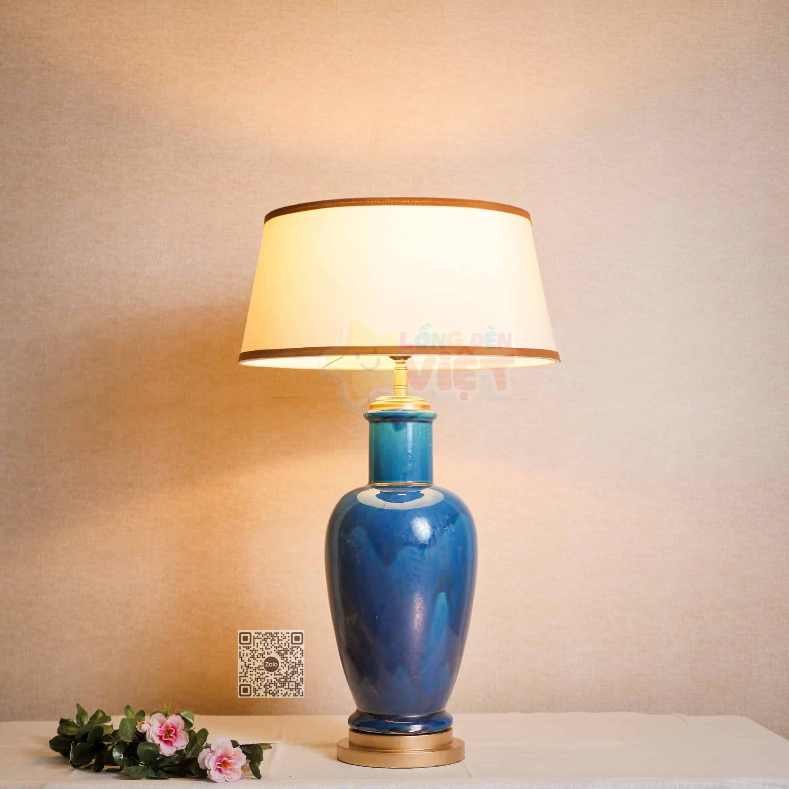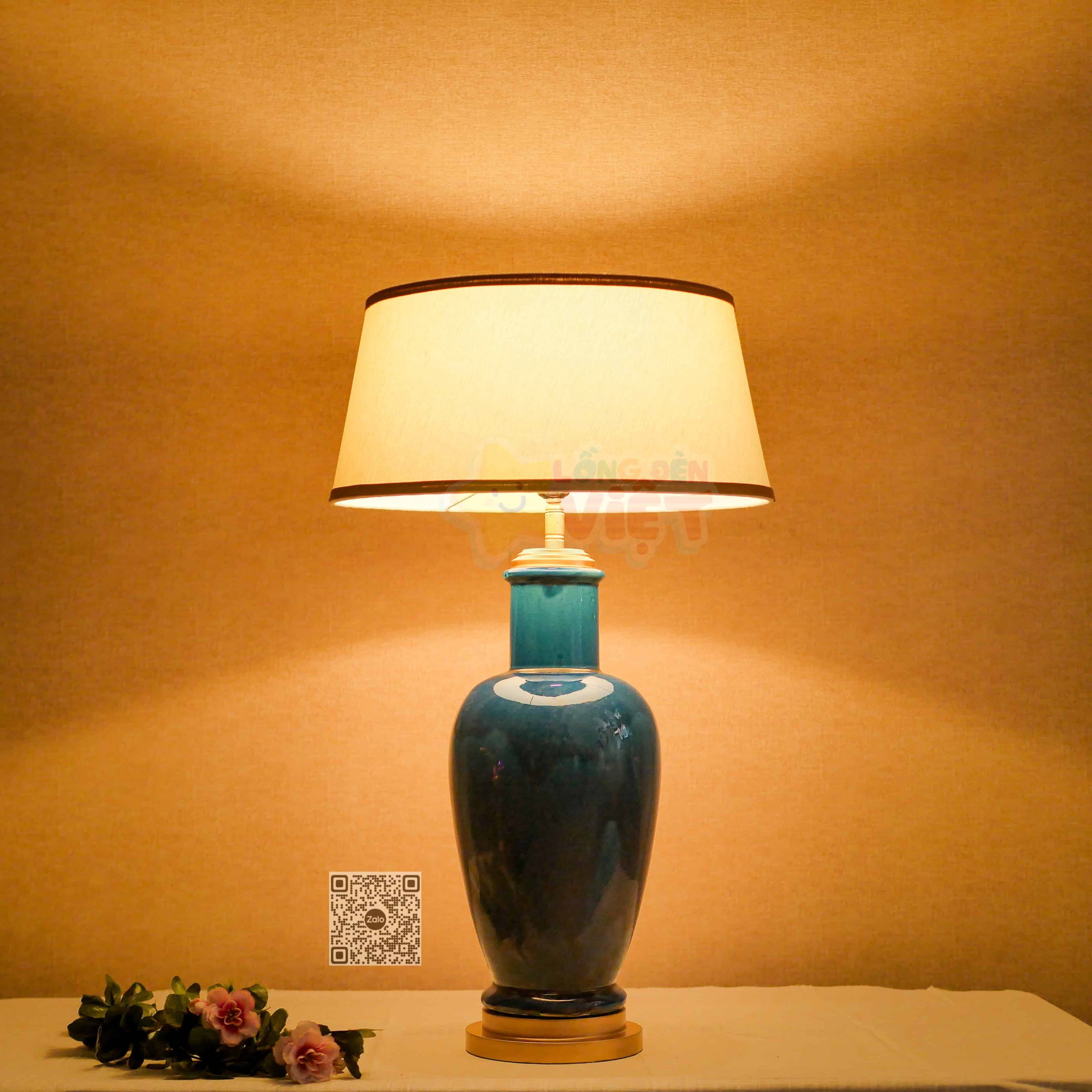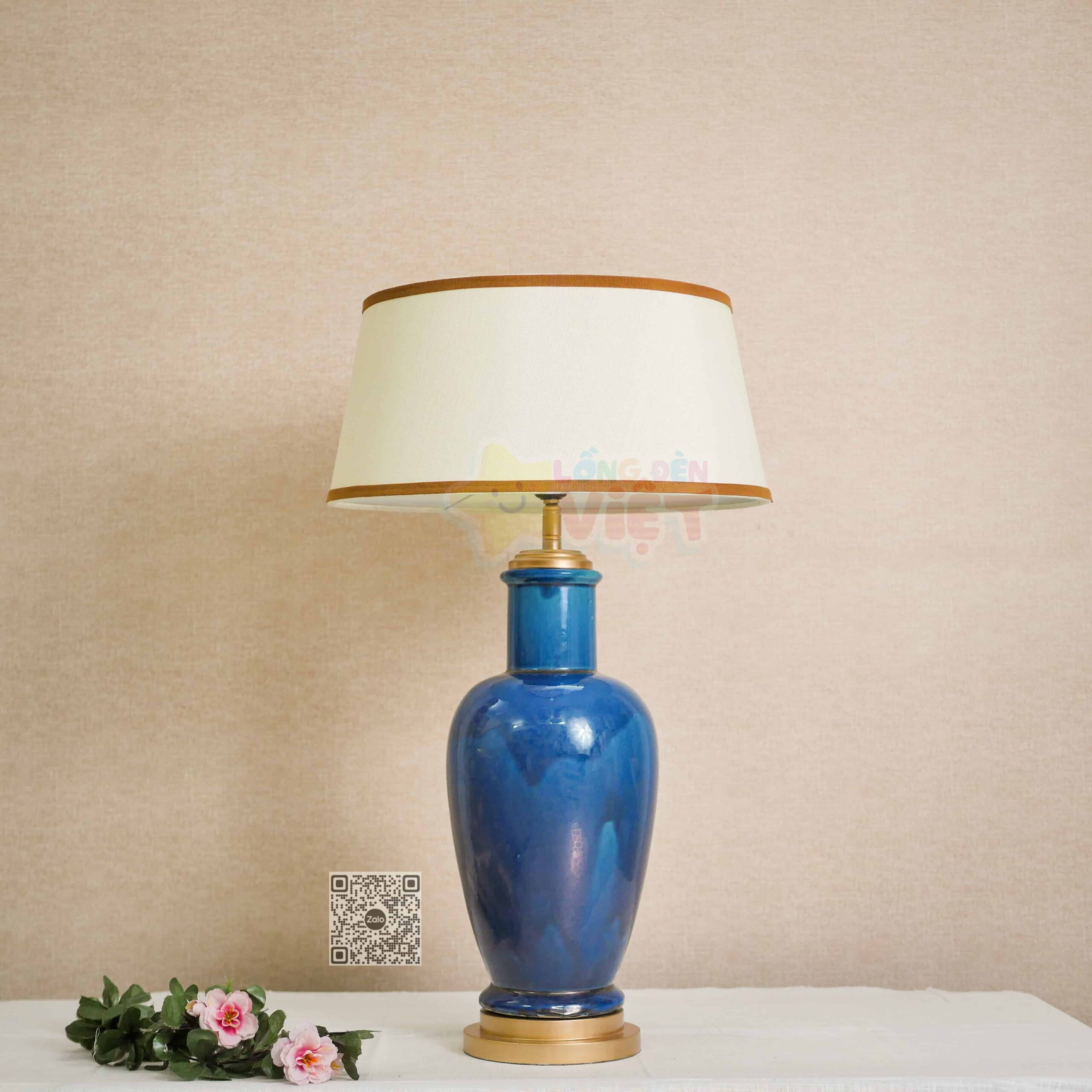 – Chất liệu: bình sứ, khung chao đèn bằng sắt, mica bọc vải đũi